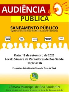 Na manhã desta quinta-feira, 18 de setembro, a Câmara Municipal de Boa Saúde sediou uma importante Audiência Pública para tratar …